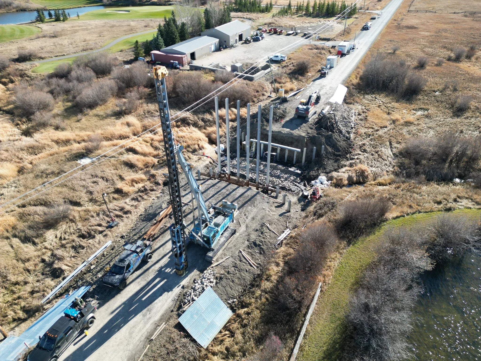 This project involved the complete reconstruction of the existing bridge over Pine Creek for Foothills County, adhering to Alberta Transportation specifications. The scope of work included the full demolition of the old bridge and the construction of a new structure featuring H-piles, abutment caps, backwalls, and precast prestressed concrete girders. Road widening activities were carried out to improve traffic flow, while new guardrails, bridge rails, and asphalt approach slabs were installed to enhance safety. Environmental management was a critical component, with turbidity monitoring and a water bypass system implemented to protect the active creek during construction. The project was completed on schedule, meeting the highest standards of quality and earning full satisfaction from both the client and the consultant.